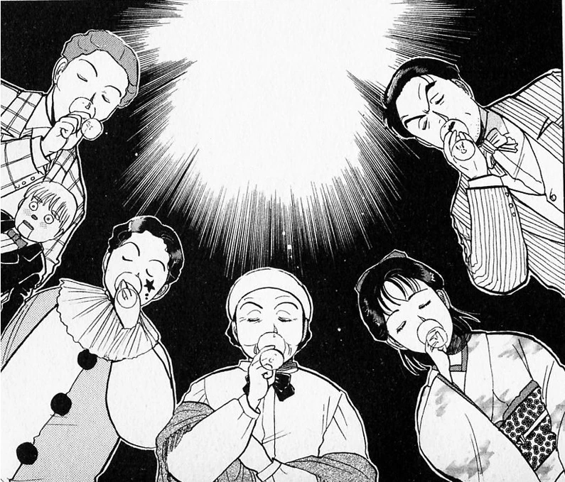 Later, it was revealed that some of the group members were actually involving in drug smuggling, as Bandai and Nijikawa were the partners of drug dealer Red Beard St. Claus, and they took over his business after his untimely death.